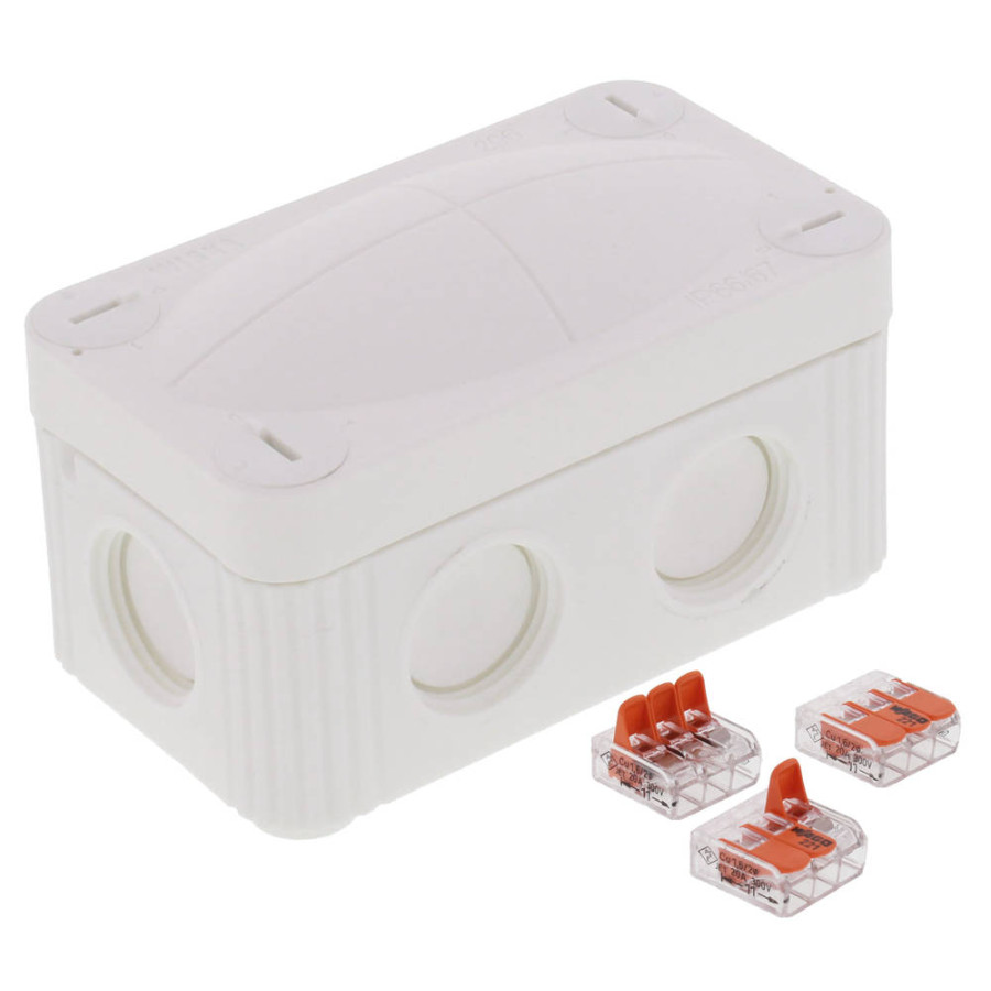 Опис Розподільна коробка COMBI 206 WH / 3xWAGO 221-413 85x49x51мм, RAL 9001, з клемами 3x WAGO 221-413