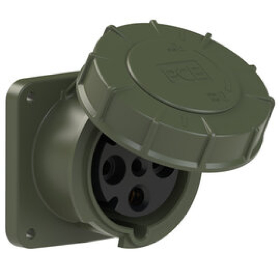 Опис 3345-6.u Розетка CEE врізна пряма (100x100) 63A 4p 6h IP67 з пілотним контактом бронзово-зелена