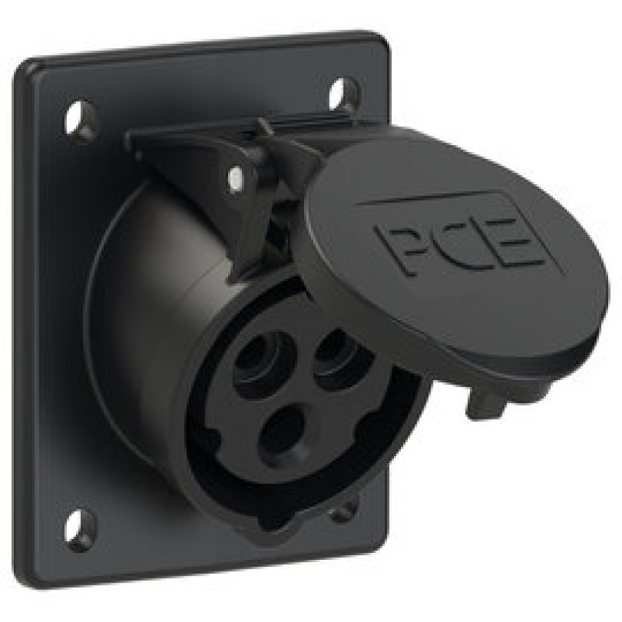 Основні характеристики 413-6x Розетка CEE врізна похила (70x85мм) 16A 3p 6h IP44/IP54 чорна