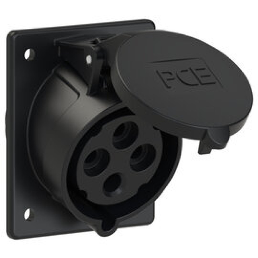 Основні характеристики 424-6ttx Розетка CEE врізна похила (80x97мм) 32A 4p 6h IP44 чорна
