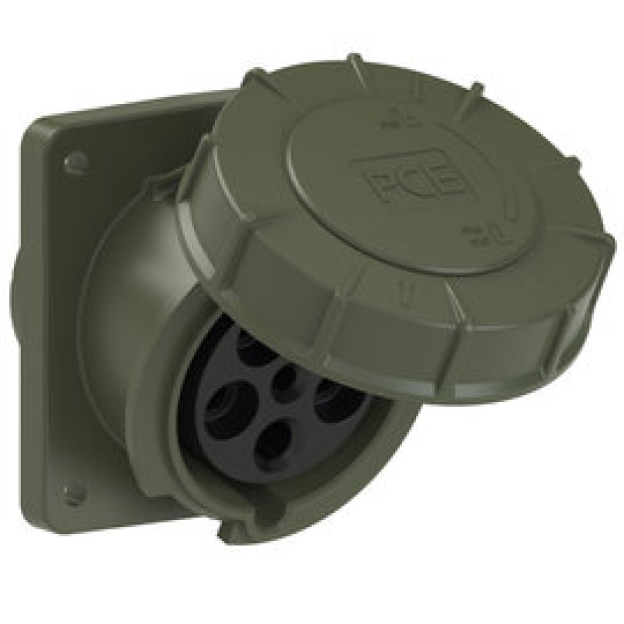Основні характеристики 435-6.u Розетка CEE врізна похила (100x112) 63A 5p 6h IP67 бронзово-зелена